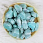 Entdecken Sie die ruhige Schönheit von Angelit, einem natürlichen, blauen Trommelstein, der für seine beruhigende Energie und sein elegantes Aussehen geschätzt wird.