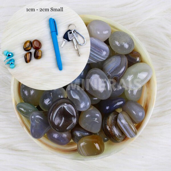 Appreciate the subtle elegance of Gray Agate, a natural tumbled stone known for its grounding energy and smooth, calming appearance.