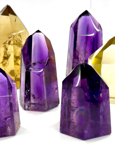 Symbolically, the purple color is associated with wisdom, balance, sophistication, and sobriety. In spirituality, amethyst is believed to promote higher states of consciousness and offer healing and protection: